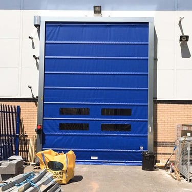 Industrial PVC speed doors manufactured and repaired for workshops, warehouses and automotive facilities