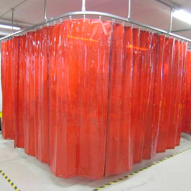 Clear and opaque PVC curtains for dust control, overspray containment and clean working zones.